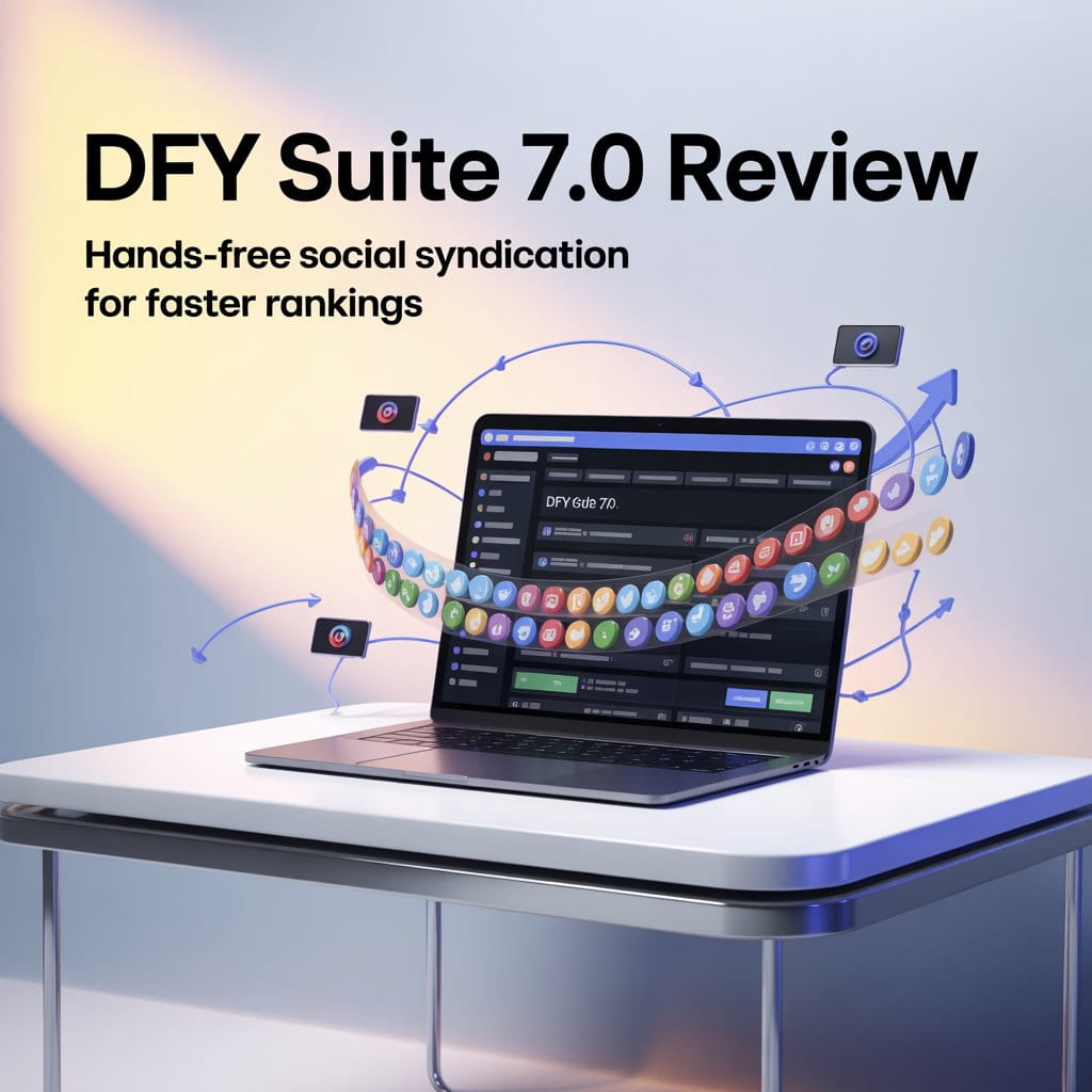 DFY Suite 7.0 is a done-for-you social syndication and backlink distribution platform. You submit a URL and keywords—or an RSS feed—and the system builds diversified links, embeds, and supporting content across its managed network. Version 7.0 also includes tools to research keywords/niches, generate AI-written SEO content, and publish optimized posts with a single click.