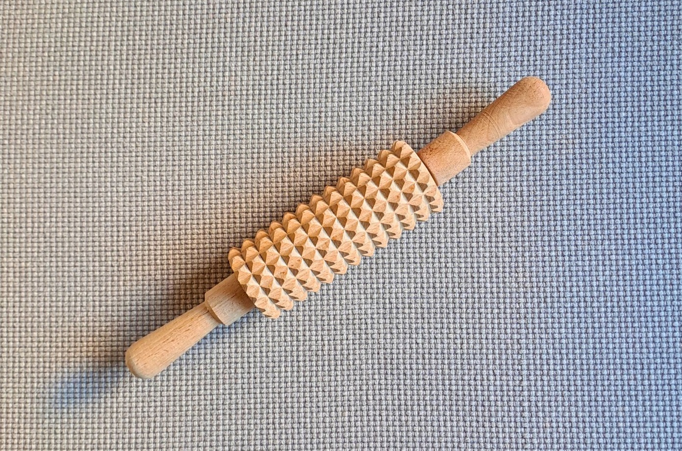 Rolling the bundle tightly in a towel and moving it back and forth compresses and shrinks the fibers further, a process called fulling. Using a matchstick blind allows for rolling the wool more efficiently. Once sufficiently compact, the felt piece is thrown lightly onto a hard surface. This allows the fibers to interlock better and shrink further.